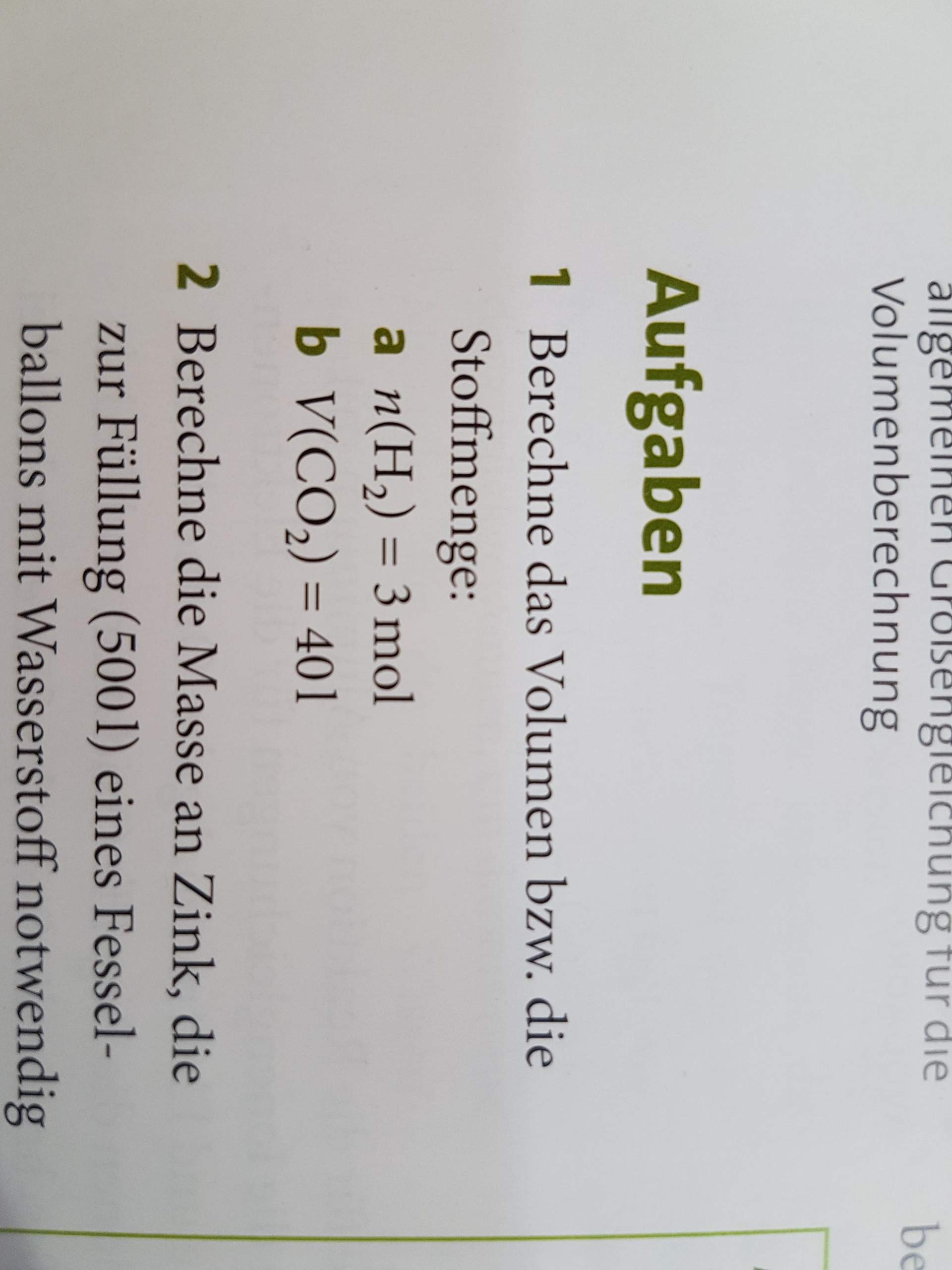 Wie berechne ich die Stoffmenge von n(H2)=3 mol? (Schule, Chemie, Hausaufgaben)