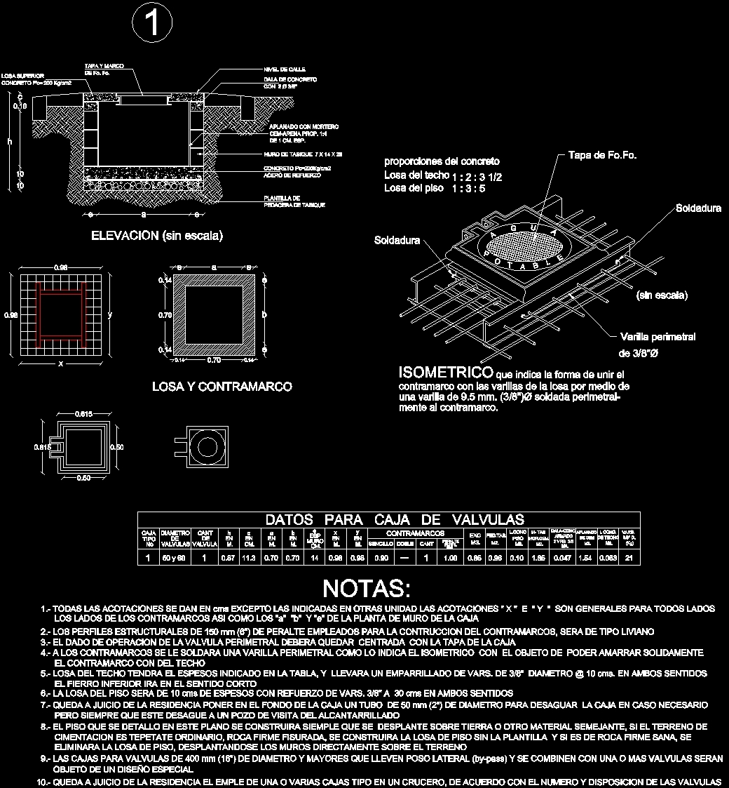 Cajas para operación de válvulas. Las cajas para la operación de válvulas se utilizan para alojar y proteger las válvulas de control en sistemas de agua potable; las cajas típicas sirven para alojar válvulas de 50 mm (2") a 500 mm (20"); para diámetros mayores o combinaciones especiales, será necesario realizar un diseño específico.