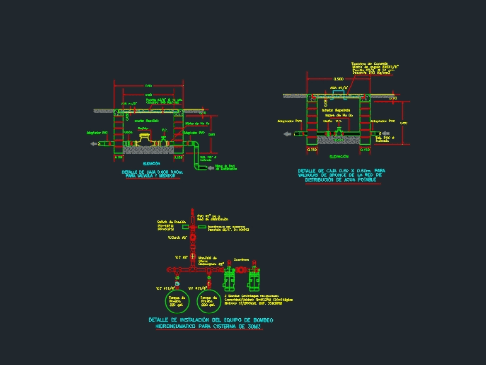 Planos de Detalle cñmaras de agua potable en DWG AUTOCAD, Red provisión de agua