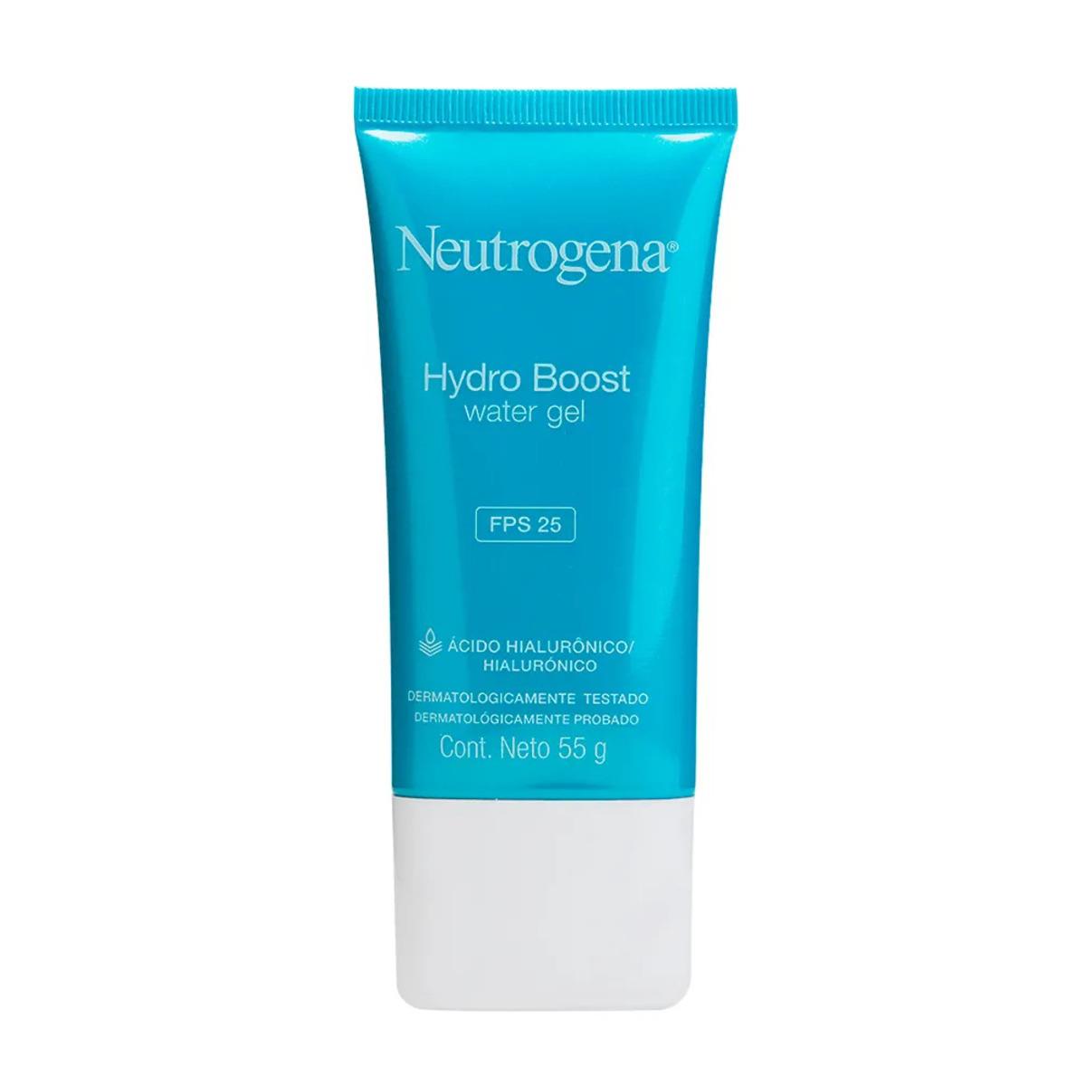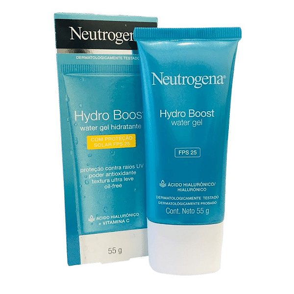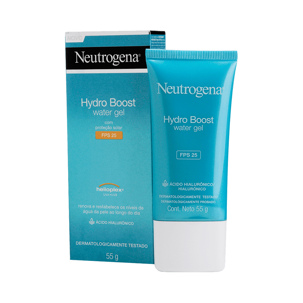 Descrição do produto. O Hidratante Facial Neutrogena Hydro Boost Water Gel FPS 25 combina a hidratação intensa 24 horas e proteção aos raios solares em uma textura única e super leve. Com ácido hialurônico e tecnologia helioplex, ajuda a restabelecer os níveis saudáveis de agua na pele, além de proteger contra o envelhecimento precoce.
